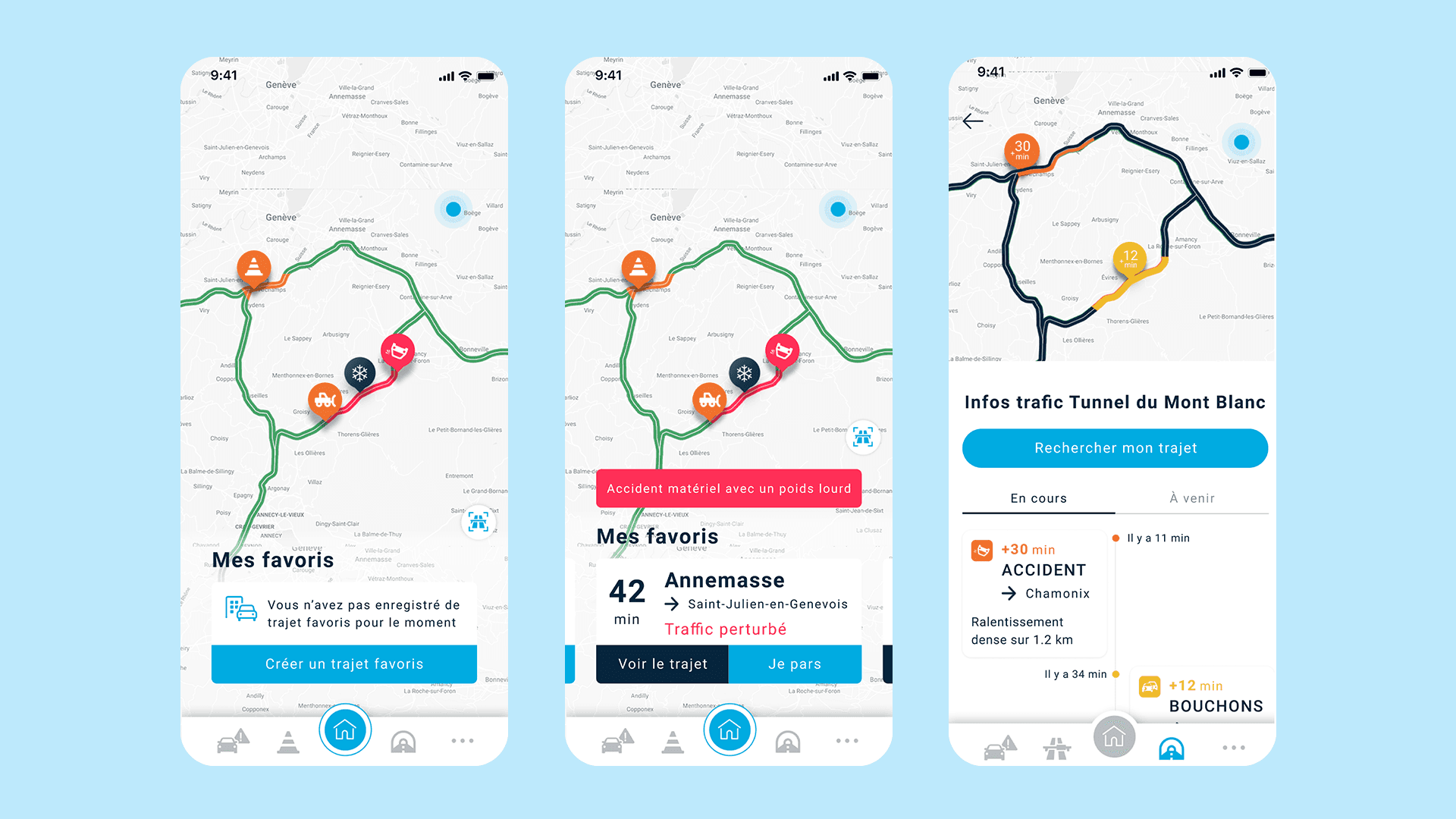Accès rapide aux trajets du quotidien sous forme de favoris